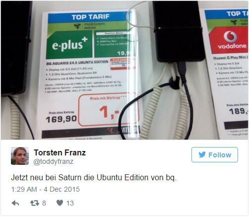 德国一商店正以1欧元的价格兜售Ubuntu Phone合约机