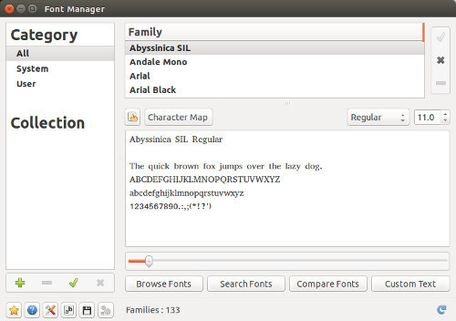 另外,用户可以通过安装字体管理程序,在图形用户界面管理字体。要在Ubuntu中安装字体管理程序,打开终端并输入下面的命令: