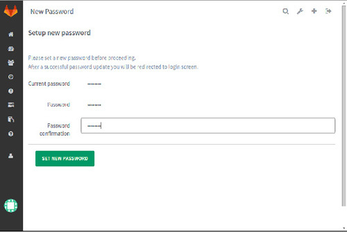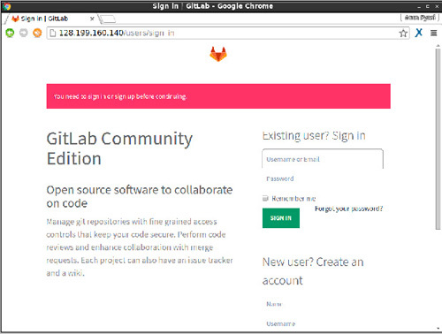 现在,为了登录进面板,我们需要点击登录按钮,它将询问我们的用户名和密码。然后,我们将输入默认的用户名和密码,即 root 和 5iveL!fe 。在登录进控制面板后,我们将被强制要求为我们的 GitLab root 用户输入新的密码。