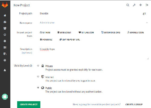 接着,我们将被询问给我们的项目输入所需的信息和设定,正如下面展示的那样。我们甚至可以从其他的 Git 仓库提供商和仓库中导入我们的项目。