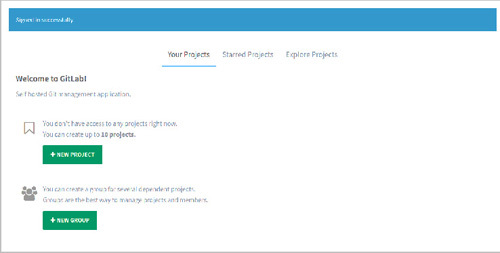 在我们成功地更改密码并登录到我们的控制面板之后,现在,我们将为我们的新项目创建一个新的仓库。为此,我们需要来到项目栏,然后点击“新项目” 绿色按钮。