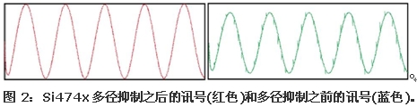 由于车用电子工作环境比较特殊,音讯接收器往往会受到外界环境的干扰,从而会产生噪音和讯号的衰减,降低组件效能。由于无线电波被高大建筑和树木的反射,Si474x接收到幅度和相位不同的反射波,为此,Si474x设计中包含了多径讯号抑制功能。如图2所示,Si474x内部的DSP会侦测并抑制多径干扰,这样就可以改善因为多径干扰产生的不良影响,提升处于多径情况下的收音机接收器效能。