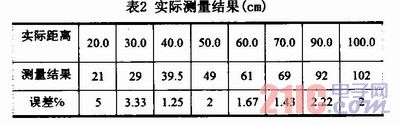 表2是利用本文的测距模块实际测量的结果。由表中数据可见,在30cm范围内误差较大,这是由于超声波信号的发射必须有一个上升时间,如果距离太近单片机难以及时处理回波信号,无法正确检测回波到达时间,因而测量误差明显增加;而距离在30em以上时,由于引入温度补偿单元,因而误差相对较小。