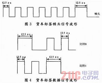 ①如果是机车标签,当单片机捕获到12.5μs的波形时,用01表示,到25μs的波形时,用10表示。出现2个01时,解码为“0”,出现1个10时,解码为“1”。