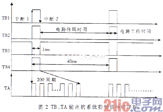 2.2 MSP430F449对系统工作时序的控制 前面已经介绍过系统的间歇工作方式,这种工作方式的时序控制是利用MSP430F449的计数器的多路任意波形产生功能和中断控制功能,以及CPU的中断快速唤醒功能实现的。 系统复位后,MSP430F449首先对电路进行初始化,包括设置MSP430F449内部的两个16位计数器TA和TB及其中断、设置两路DDS、设置片内ADC、设置HART板等。之后,MSP430F449的CPU开计数器TB使其开始计数,自身则进入功耗极低的休眠模式。系统就在TB输出信号的控制下实现要求的工作时序。TB、TA的输出波形如图2所示。 其中,计数器A的输出信号设置为片内ADC的采样时钟源,采样频率设置为200kHz;计数器B的计数周期则设为40ms,并且设置相应通道的输出波形休眠。需要设置的MSP430F449和外部电路的工作或者休眠。需要设置的TB的寄存器有控制寄存器、计数值寄存器、捕获/比较控制寄存器、捕获/比较寄存器等,它们规定了TB的时钟源、工作方式、计数周期、输出模式、中断等。 图2中TB输出的几路波形中,TB1作为系统中断源,中断1时刻唤醒CPU,CPU打开ADC对回波信号进行采集,并采集回波数据;中断2时刻CPU关闭 ADC和外部电路。TB2、TB3分别控制两路窄脉冲产生电路的开与关。TB4作为双路DDS的开关信号。 2.3 MSP430F449测量方式与信号处理 前面说过,在信号处理机制上使用了具有创新意义的时间比例放大技术。这种技术将发射脉冲和接收脉冲之间的时间间隔按一定的比例放大,时间比例放大需要另一个频率与发射脉冲频率很近的参考信号。本设计中根据时间比例放大测量的需求分别产生1MHz、1MHz+100Hz和1MHz、1MHz+4MHz的双路信号控制发射脉冲和参考脉冲产生电路,并且需要能够精确控制它们的相对相位。这两路信号是通过MSP430F449控制双路直接数字频率合成器(DDS)AD9834而产生的。 DDS技术以其极高的频率分辨率、极短的频率转换时间、输出信号相位连续等特点而得到广泛应用。本设计中使用AD公司的DDS芯片AD9834,其内部包含相位累加器、编程寄存器、串行I/O接口、正弦查询表、D/A变换器等。AD9834频率控制字为28位,5MHz系统时钟时频率分辨率为 0.0186Hz,3V电源电压供电时功耗为20mW。AD9834提供低功耗模式,由TB4的输出信号进行控制。MSP430F449通信串行I/O口控制双路DDS输出频率和相对相位。MSP430F449控制两路频率分别为1.000119MHz和1.000123MHz的AD9834输出信号时频谱如图3所示。 一次完整的测量过程分为目标搜索和精确测量两部分。完成一次目标搜索需要两个TB周期,在这个阶段,发射脉冲的频率为1MHz+100Hz,参考脉冲的频率为1MHz。根据分析,此时时间比例放大系数K=10001,系统最大测量距离为30m,发射脉冲和接收脉冲最大时间间隔为200ns;经过时间比例放大后,最大时间间隔为2.0001ms,所以两个采样周期就可以把目标可以出现的位置都记录到。根据两次记录的数据判断目标出现位置,并换算成相位。在第三个TB周期,MSP430F449进入精确测量阶段,由目标搜索阶段中记录的目标相位值设置产生参考脉冲时钟的AD9834相位,频率设置为 1MHz+4Hz,产生脉冲时钟的AD9834频率设置为1MHz。此时,相应的比例放大系数K=250001,在200kHz采样时钟下,时间的分辨率为20ps,相应的距离分辨率为3mm,在精确测量阶段可以满足系统距离精度的要求。 2.4 MSP430F449与HART协议通信模块 液位仪的测量结果和PC机对液位仪的控制信号经HART通信模块传输。HART可寻址远程传感器。高速通道开放通信协议是一种应用于现场智能仪表和控制室设备间的通信协议,它采用在4~20mA模拟信号上叠加音频数字信号进行双向数字通讯,而不影响传送给控制系统的模拟信号的大小,保证了与现有模拟系统兼容。本设计中采用HART协议的简化三层模型结构,即第一层物理层、第二层数据链路层和第七层应用层。HART协议框图如图4所示。