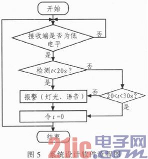 本系统在调试模拟时,使用了在天津锐志单片机公司购买的一块单片机开发板,结合该开发板上的外围电路的设计,在使用P89V51RD2的管脚时,使用了闲置的P1与P3的几个IO口,程序设计流程图如图5所示。