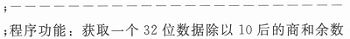 (0.1)D=0.000 1100 1100 1100 1100 1100 1100 1100 1100 1100……为方便32位单片机进行整数运算,预先将上式中的二进制数左移35位,即将其扩大235倍后得到除数10的魔术数(MagIC_Number)为:
