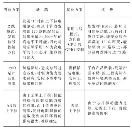 其驱动能力提高了25~50倍(不同厂家不同型号有差异),如果辅以终端电阻灵活配置的措施,RS485的驱动能力将完全不是问题。表1是两种控制方式驱动能力的对比。