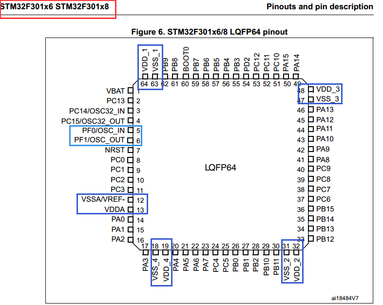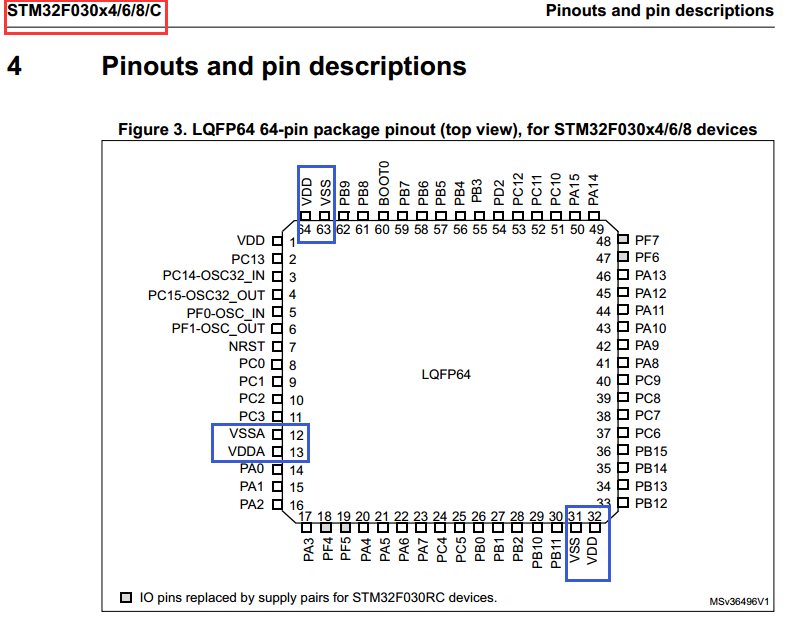 下面就以LQFP64封装为例,将(F0 - F4)不同系列、型号芯片的引脚图进行对比,相信你们看了引脚图,就会明白其实STM32大部分芯片(相同封装)是可以兼容的。