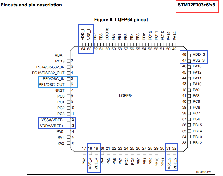 从上面可以看得出来,大部分相同封装的芯片在引脚上基本上相同。我们虽然是以LQFP64封装为例,其它封装也是类似的具有很高的兼容性。