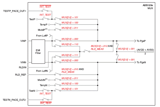 图2.ADS1298每路输入复接器方框图