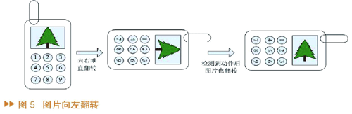 系统设计了六种动作,他们分别是左摇、右摇、下摇、上摇、图片左转、图片右转。图4中的图形象地说明了其中的两个动作,其它的动作与此类似。