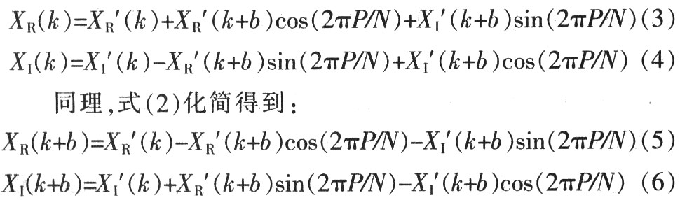 可见每个蝶形运算的输出都是由其输入值与某一正弦函数和余弦函数的乘积累加得到的。由式(3)~式(6)编制正弦和余弦表,每次做蝶形运算时可查表加快运算速度。