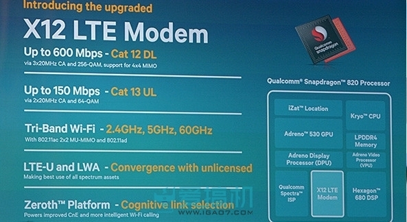 图为高通骁龙820搭载的X12 LTE基带