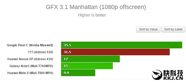 Manhattan 3.1成绩为31.5FPS,输给了Tegra X1 35.5FPS,但是除此之外别无敌手,iPhone 6S A9也不过27.7FPS。