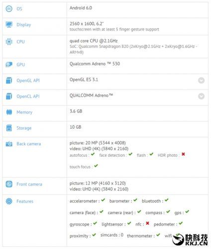 今天,GFXBench又收录了一款新的骁龙820设备,厂商和型号未知,可以看到6.2寸2560×1600分辨率屏幕,似乎是个平板,但骁龙820的频率和小米5里一样,还是两个大核2.1GHz、两个小核1.6GHz,此外还有4GB内存、16GB存储、2000+1200万像素双摄像头。