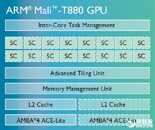 GPU方面是绝对的亮点,和华为麒麟950一样选择了Mali-T880,但后缀是“MP12”,开了12个核心(完整16个),性能自然有大幅度提升。相比之下,麒麟950只有4个核心。