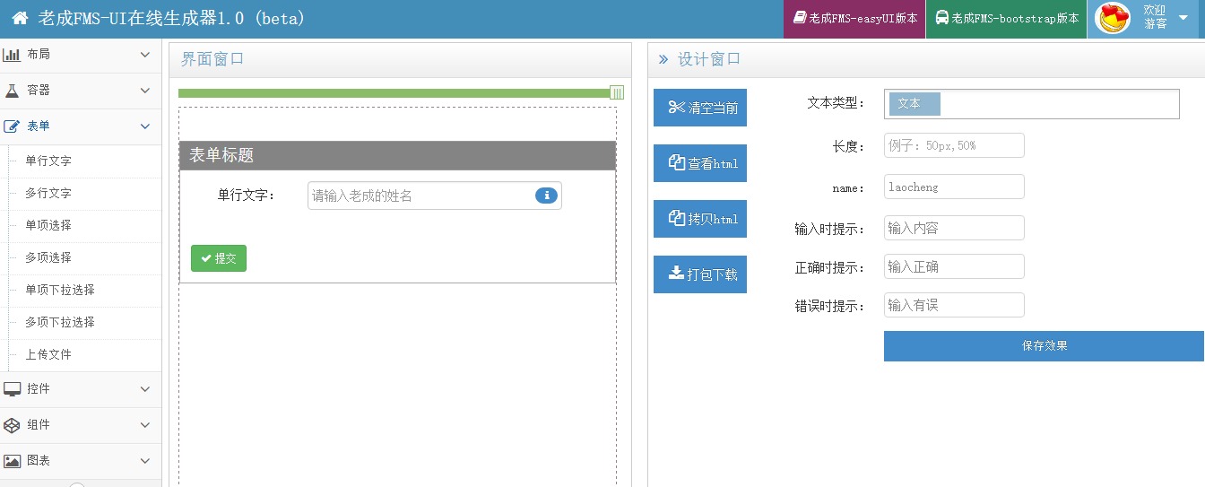 老成 FMS 4.0 发布了。这次fms升级最大的变更在于将以前的UI拖拽式编辑器,改为UI代码在线生成器。
