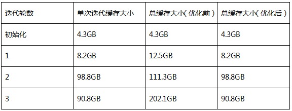 该应用是利用Spark的组件Bagel来实现的,其本质就是一个简单的迭代计算。而每次迭代计算依赖于上一次的迭代结果,因此每次迭代结果都会被主动持续化到内存空间中。当运行用户程序时,我们观察到随着迭代次数的增加,进程占用的内存空间不断快速增长,GC问题越来越突出。但是,仔细分析Bagel实现机制,我们很快发现Bagel将每次迭代产生的RDD都持久化下来了,而没有及时释放掉不再使用的RDD,从而造成了内存空间不断增长,触发了更多GC执行。经过简单的修改,我们修复了这个问题(SPARK-2661)。应用的内存空间得到了有效的控制后,迭代次数三次以后RDD大小趋于稳定,缓存空间得到有效控制(如表1所示),GC效率得以大大提高,程序总的运行时间缩短了10%~20%。