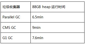 表 4 三种垃圾收集器对应的程序运行时间比较(88GB heap未调优)