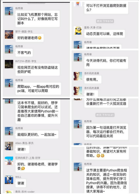 非常开心能够认识大家,和大家简单交流些Python相关的基础知识。群里面也有很多大神,我主要结合自己做过的东西,讲解一些Python知识,这节课主要是Python爬虫相关的知识,通过一些实际的简单应用,提升同学们学习Python的兴趣。