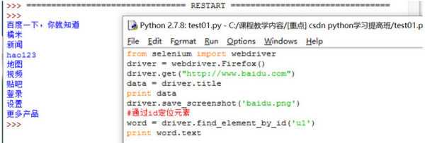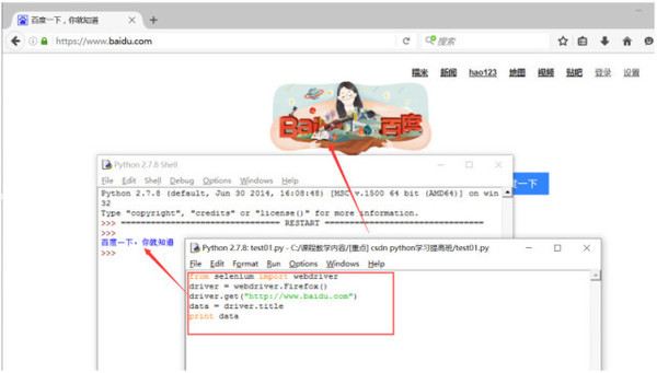 2.学会Python调用Selenium方法简单爬取百度首页。