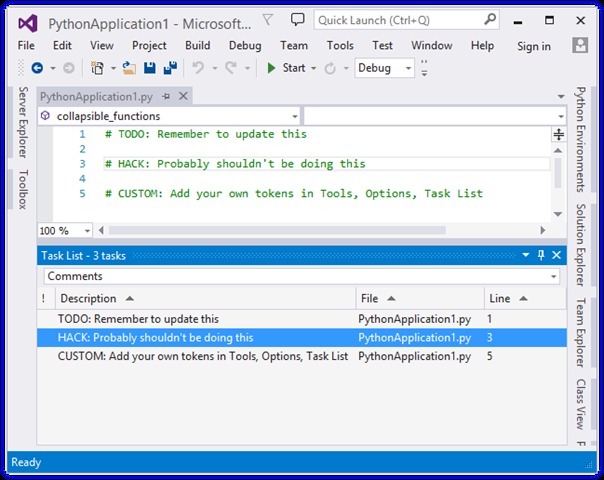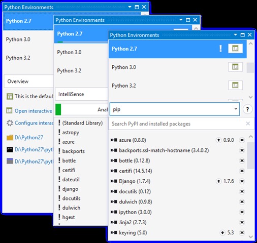 Python Tools for Visual Studio 2.2 Beta 发布,此版本距离 Python Tools for Visual Studio 2.1 (PTVS) 已经有一段时间了,这段时间团队主要关注 Azure Machine Learning 和 Python Client library。今天发布 PTVS 2.2 beta for Visual Studio 2013 (包括免费选项 Visual Studio Community Edition, Express for Web and Express for Desktop) 和 Visual Studio 2015 CTP 6。