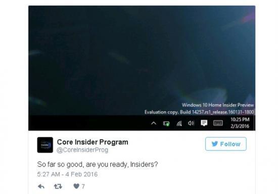 进入新的一年,微软显然加快了Windows 10测试版本的更新速度。昨天,Insider老大Gabe Aul自曝已经用上Build 14257(桌面版),外界普遍认为下周新版就会推送。今天早些时候,@Core Insider Program 给出了Build 14257的桌面带水印截图,并说“目前看来一切顺利,内测用户们准备好了吗?”