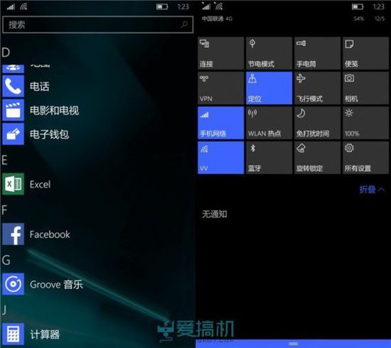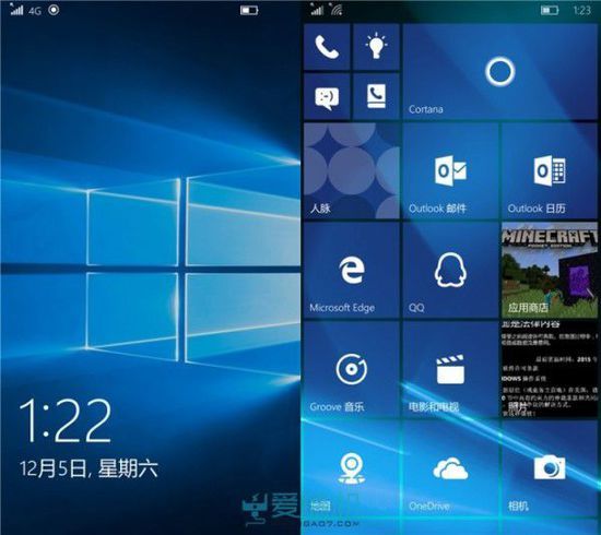 壁纸和桌面版的Windows 10的风格很相似,启动器依然采用了瓷砖式的造型,但是相对于Windows Phone 8看起来更加有科技感。
