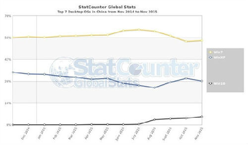 近日,根据Stat Counter的统计数据显示,Windows 10在国内的市场份额迄今不过5.22%,落后于Windows 7和Windows XP,Windows XP甚至一度反弹上涨。