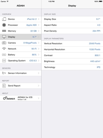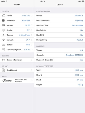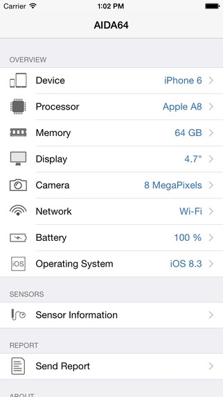 AIDA64 iOS版支持iPhone、iPad、iPod touch,操作系统需要iOS 7.0或更高版本,WP版则支持Windows Phone 8.1、Windows 10 Mobile(预览版)系统的手机、平板。