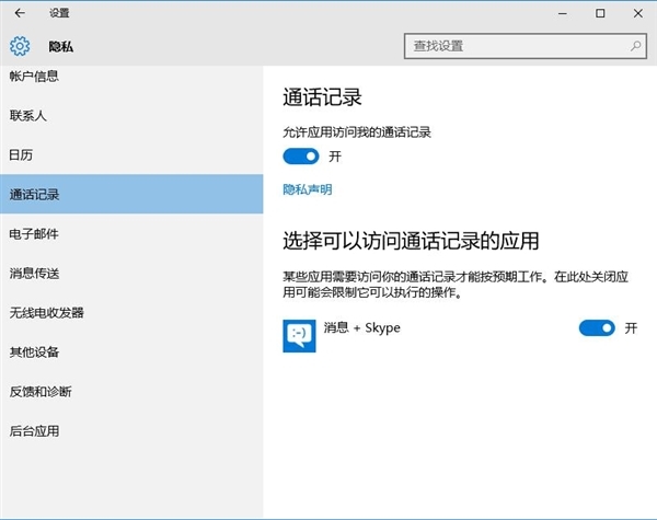 Windows 10隐私问题受到很多用户关注,新版中又新增通话记录访问权限,以及电子邮件权限设置来提供更多的自主权限。