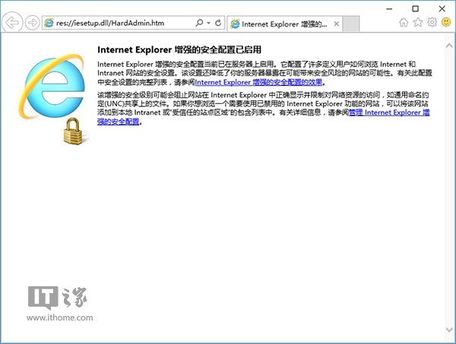另外,该系统中是无法使用应用商店、Cortana和Edge浏览器的,后两项都被传统功能替代,分别为“搜索”和IE11浏览器(安全增强模式,如下图)。