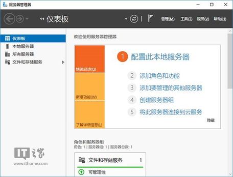 Windows Server 2016开机后会自动打开“服务器管理器”,方便管理员操作(如下图)。