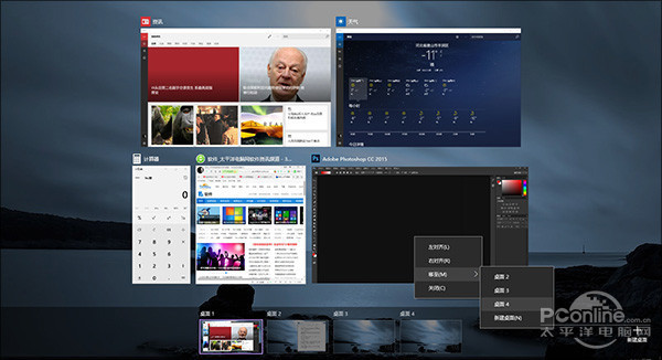 Win+TAB是一个很特殊的键,在Win7下它是一年也难得用一次的Flip 3D。而在Win10中,则化身为“虚拟桌面”。在这个界面下,你可以将桌面分布在不同的“桌面”内,将工作与娱乐轻松划分。此外你还可以借助右键,将一个已打开窗口直接移至另一个“桌面“,瞧!提高效率就这么简单!
