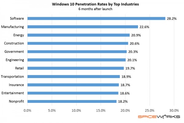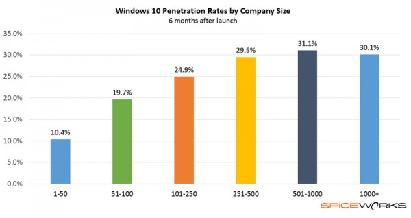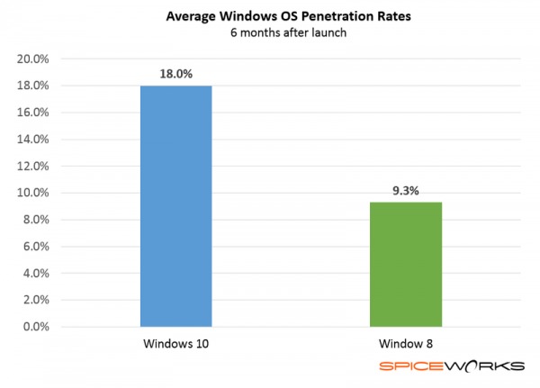 Spiceworks公布数据:Win10是采用率最快的Win系统