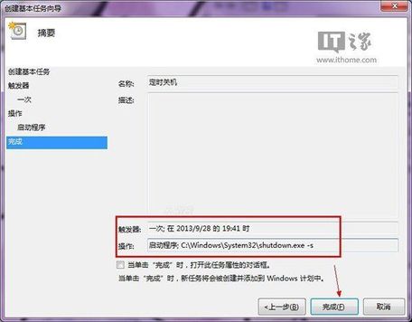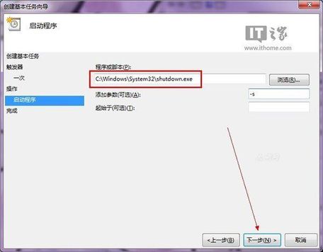 在WIndows自带任务关机时,记得不要忘记参数"-s"表示关机,需要填写。