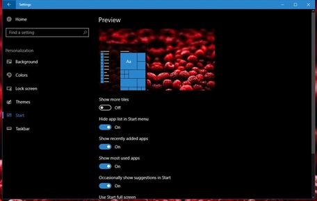 在最新曝光的RedStone 2系统截图中,开始菜单的变化最为显眼,其允许用户完全隐藏应用列表,从而看起来更加简洁。