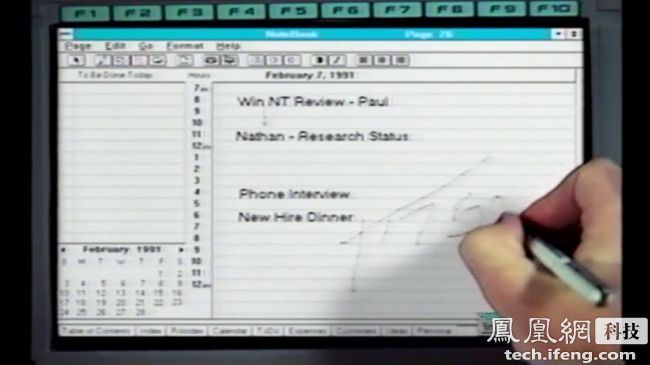 运行中的Windows for Pen Computing。Tablet PC并非微软在配置触控笔的PC方面的首次尝试。早在1992年,Windows for Pen Computing 1.0就给Windows 3.1增添了手写体识别、笔记本应用和屏幕软键盘。Windows for Pen Computing 2.0面向Windows 95。