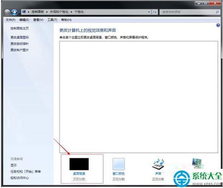 9、进入个性化窗口后,找到"桌面背景"这一项,单击一下即可。