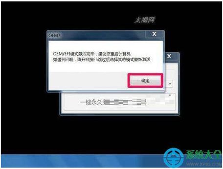 4、其实,整个过程也就几秒钟,激活完成后,弹出提示"OEM/EFI模式激活完毕,建议你重启计算机。