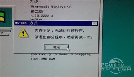 Win98里的内存不足提示,话说现在的小盆友大概很少见过这个界面了吧