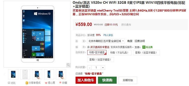 出色Win 10板儿! 昂达V102w仅售559元