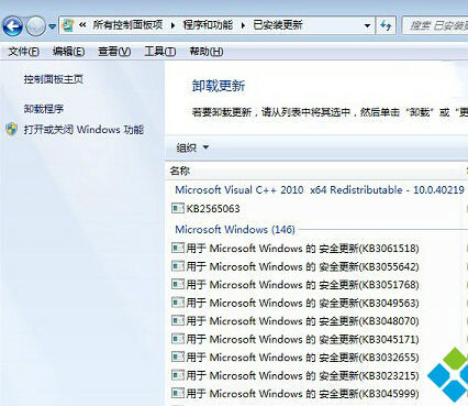 3.在打开的窗口中,咱们就需要在右侧窗口中找到名为“KB3035583补丁”的选项,找到该项之后,点击鼠标右键,选择卸载就可以了。
