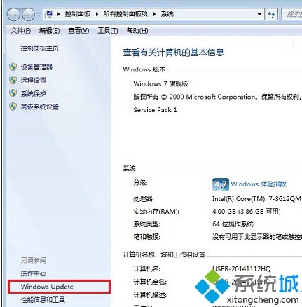 2.之后咱们就可以看到如下图中所示的窗口了,咱们点击弹出窗口中左侧菜单中下方的“Windows Update”选项。