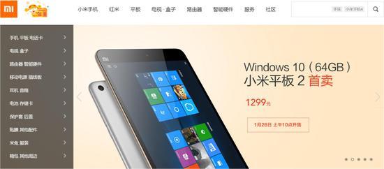 小米在官网宣布,预装Windows 10系统的小米平板2,将于1月26日上午10点首发开卖。