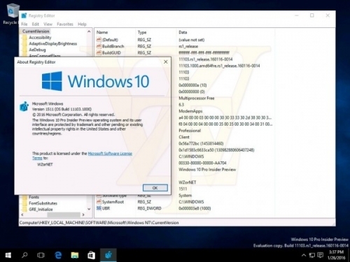 【IT168 资讯】俄罗斯爆料大神WZor今天公布了Windows 10 Redstone Build 11103版本的几张截图,比日前公开推送的Build 11102只高了一个版本。这个版本隶属于rs1分支,完整版本号为“10.0.11103.1000.rs1_release.160114-2232”,编译于1月14日晚间。