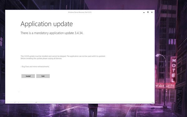 WP8.1、Win10 Mobile手机下载、刷机桌面工具Windows Device Recovery Tool今天迎来小更新,版本升级到v3.4.34,升级版本主要对一些Bug进行了修复并做了一些细节方面的小改进。