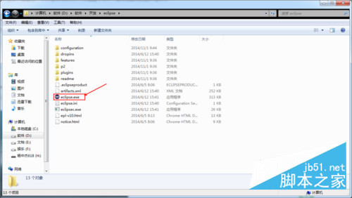 3.下载之后,你会得到一个zip文件,将这个文件解压到你电脑中的任意一目录,然后打开这个目录,里面有一个eclipse.exe文件,双击这个文件,就可以启动你的eclipse了