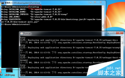 1.方法一:在CMD命令下输入命令:startup,出现如下对话框,表明服务启动成功。